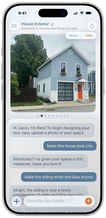 Upload a photo of your space, describe what you want, and get renovation visuals in seconds.